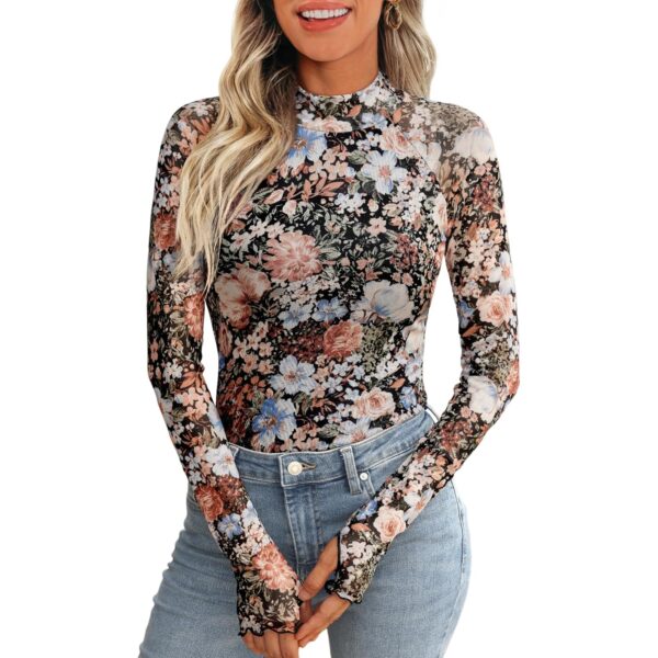 Dame blonde Sheer langærmet Floral Mesh Mockneck Trendy Cute Going Out for Dame Fall Fashion Outfits 2025 Clothes top