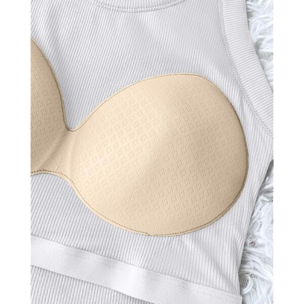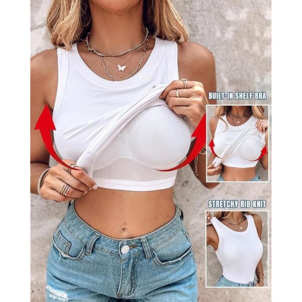 Dame Built-in Bra ærmeløs Casual Shirts Racerback ribbet Fitted top