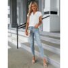 Be the first to review “Dame Business Work White med knapper Shirts Cap Sleeve V-hals bluse”