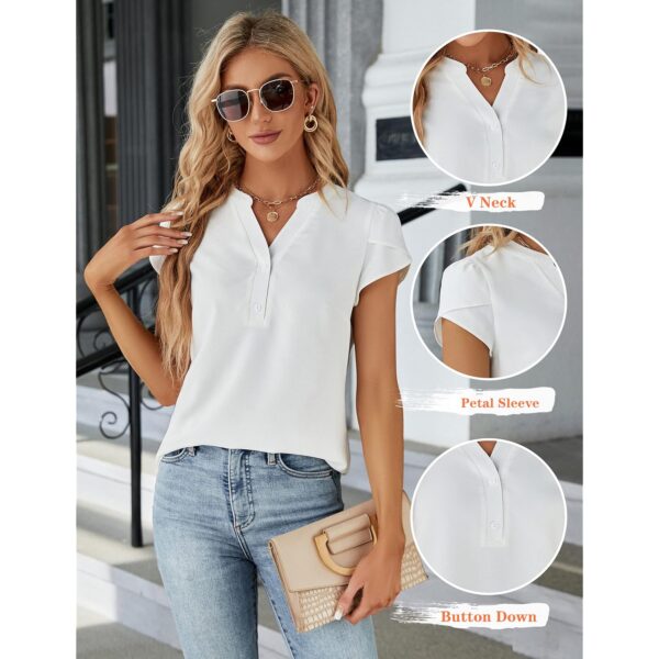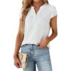 Dame Business Work White med knapper Shirts Cap Sleeve V-hals bluse