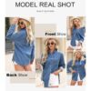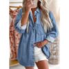 Dame Denim Shirts med knapper V-hals Casual bluse