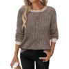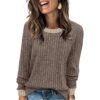 Dame langærmet Shirts for Dame Lightweight Sweaters Fall Outfits 2025 Color Block Winter Clothing Dressy Casual Soft top