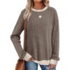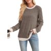 Dame langærmet Shirts Lightweight Sweaters Loose Fit rund hals Color Block Fall Fashion Outfits top
