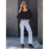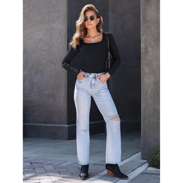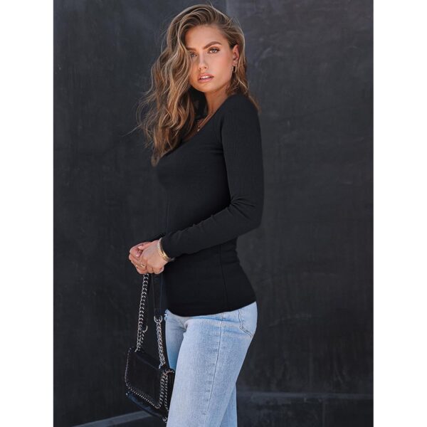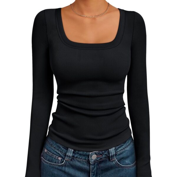 Dame langærmet Shirts Square Neck ribbet Knit Basic Teenagere cropped Fall Outfits Fashion Clothes 2025 top