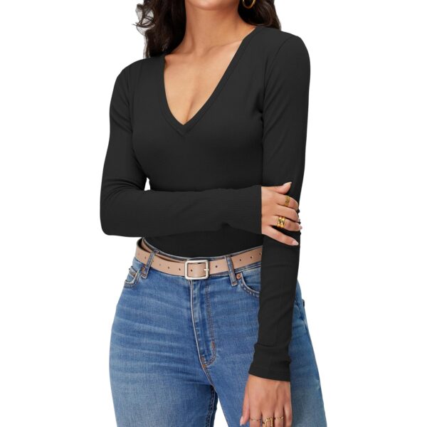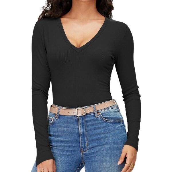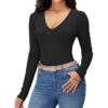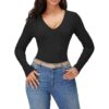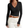Dame langærmet V-hals Shirts for Dame Business Casual Work Knit Slim Fit for Fall top
