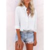 Dame med knapper Shirts bomuld Dress Shirts Oxford Shirts langærmet Work Collared Tunics with Pocket bluse