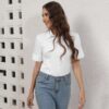 Dame med knapper Shirts Tailored kortærmet Basic Simple Stretch Wrinkle Free Formal Work bluse