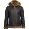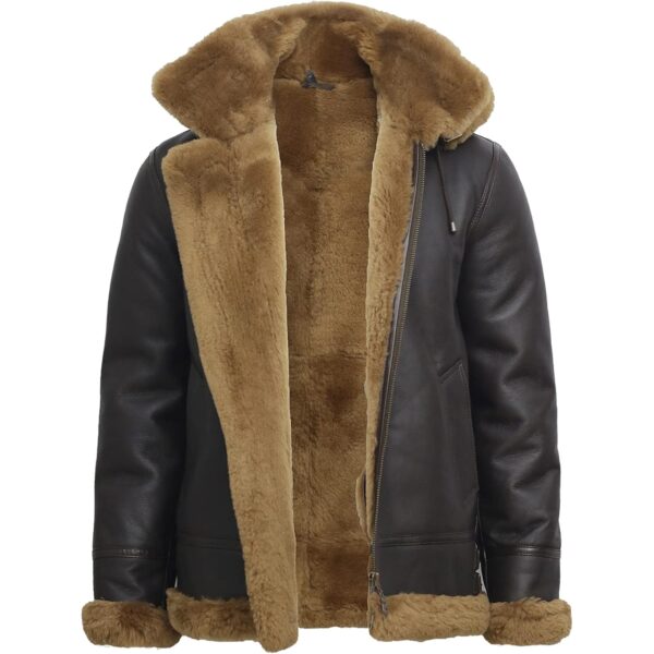 Herre Aviator Flying Genuine Shearling Sheepskin Leather Bomber jakke