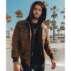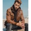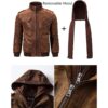 Herre Brown Leather Motorcycle jakke with Removable med hætte