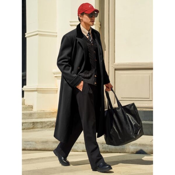 Herre Full Length trenchcoat frakke Notched Lapel Long jakke Double Breasted Classic vinter Overcoat