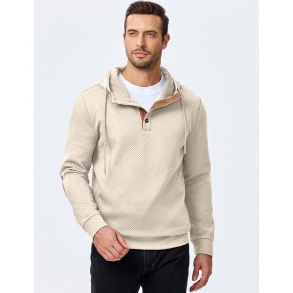 Herre hoodie efterår Casual Cotton Textured langærmet Half Button pullover Hooded sweatshirt