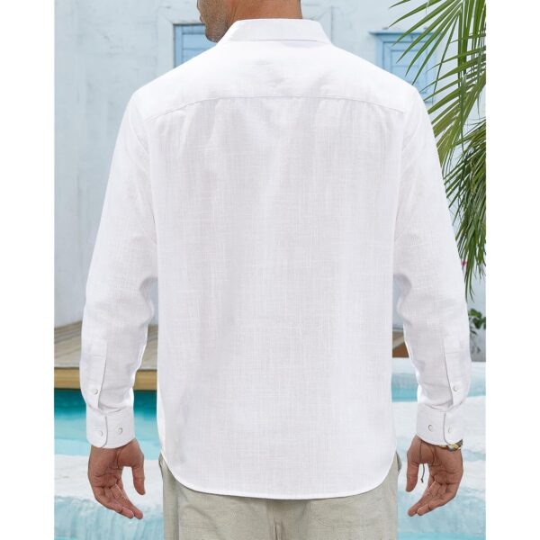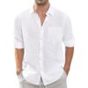 Herre hør Casual med knapper-down langærmet Solid krave Summer Beach with Pocket skjorte