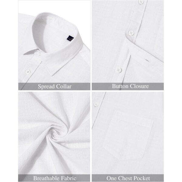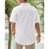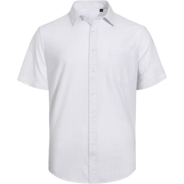 Herre hør kortærmet bomuld Casual Lightweight med knapper-down Beach Vacation Summer Tops with Pocket skjorte