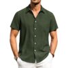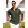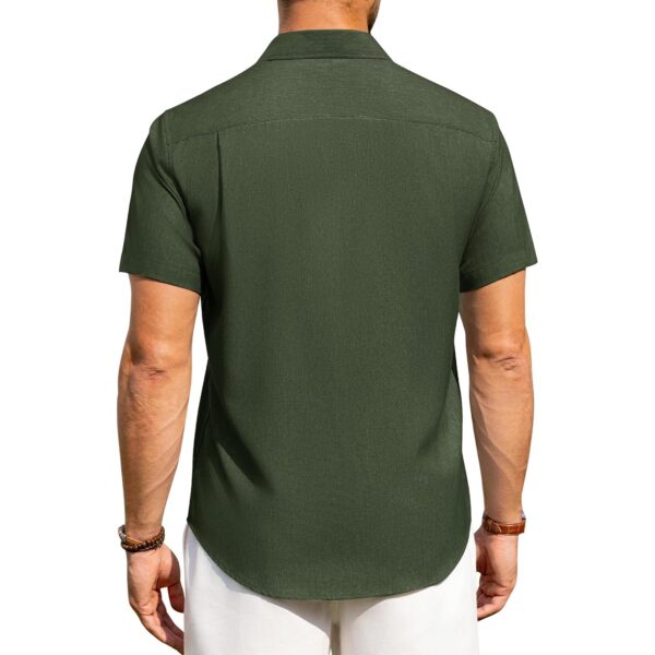 Herre hør kortærmet med knapper-down Wrinkle Free Casual Vacation Beach Summer Tops skjorte