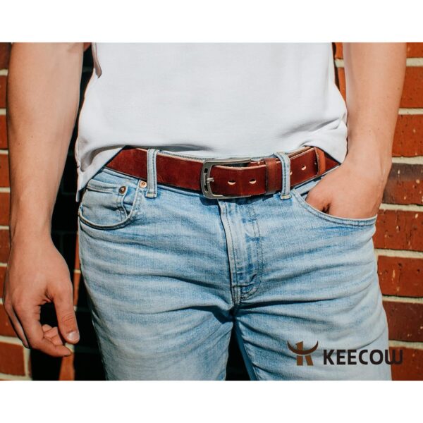 Herre KEECOW Men’s 100% Italian Cow Leather Belt Men With Anti-Scratch Buckle,Packed in a Box bælte