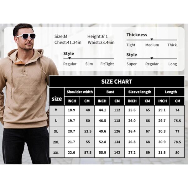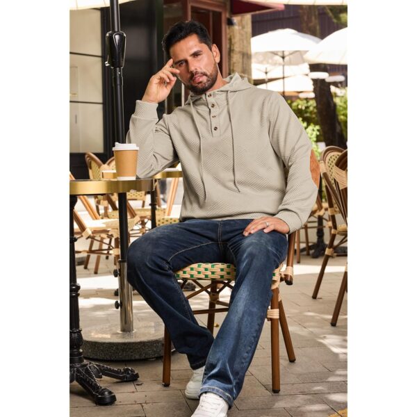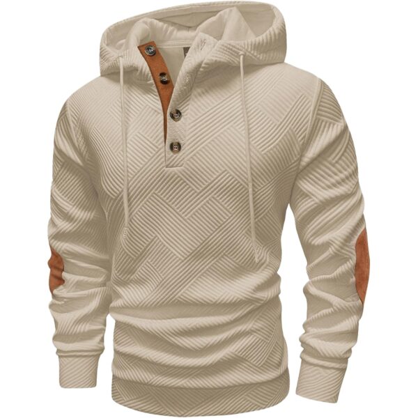 Herre mode pullover hoodie langærmet Thermal Drawstring Button Texture Hooded sweatshirt