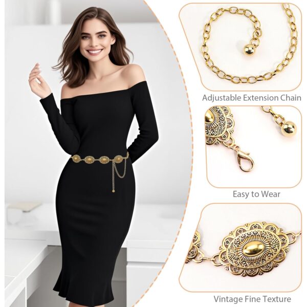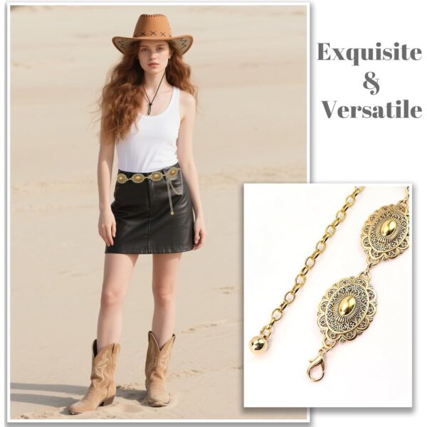 Herre Western Concho Chain Belt for Women Boho Metal Belts For Country Concert Dresses Jeans Cowgirl Vintage Waist Belt bælte