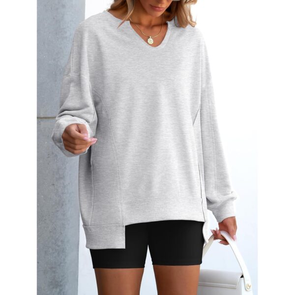 Oversize sweatshirt langærmet Tunic Shirts V Neck Loose pullover Tops 2025 Trendy efterår Teenagere Outfit