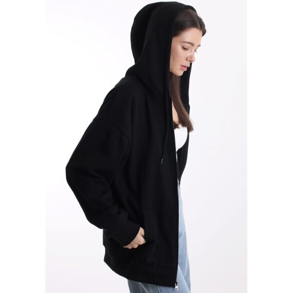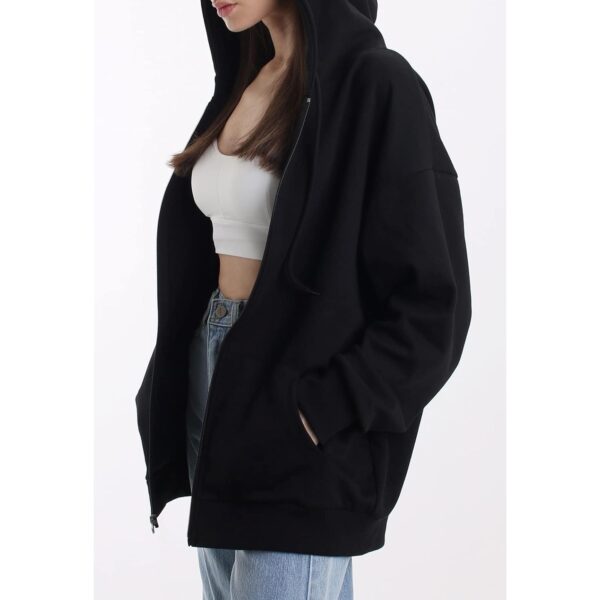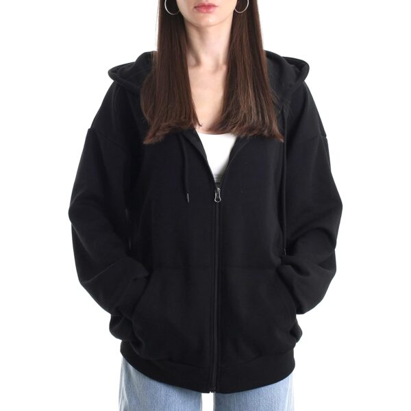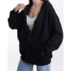 Oversize Dame’s med lynlås hoodie Lightweight Soft Baggy Drop Shoulder sweatshirt jakke