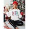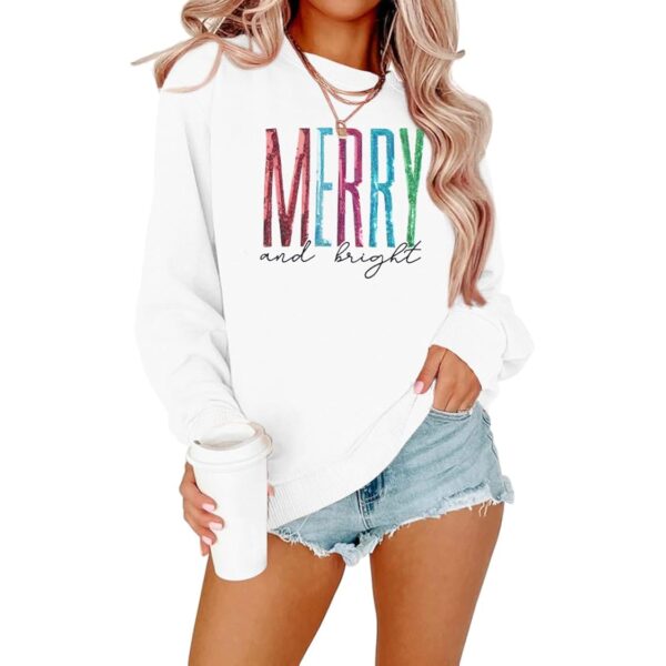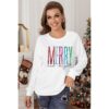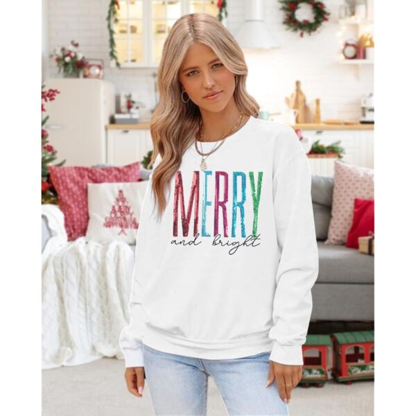 Sweatshirt Dame Merry Christmas Letter print langærmet striktrøje Xmas rund hals pullover Casual Blouse Tops