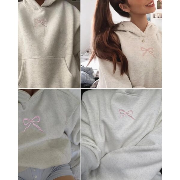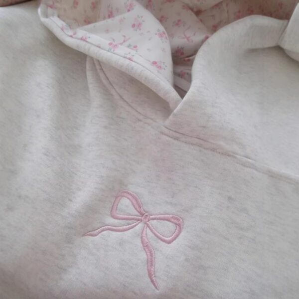 Dame sløjfe broderi hoodie Teenagere sød Graphic Hooded Loose Preppy Y2K langærmet pullover hoodie top