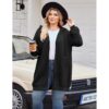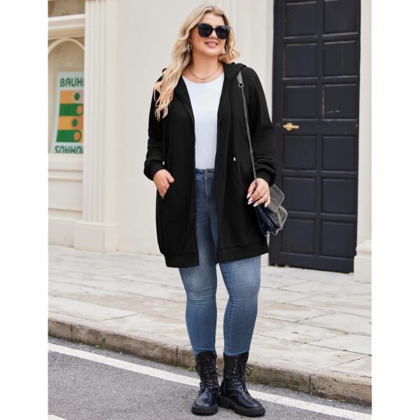 Dame plus size med lynlås hoodie langærmet Tunic sweatshirt Long fleece hoodie jakke with Pockets